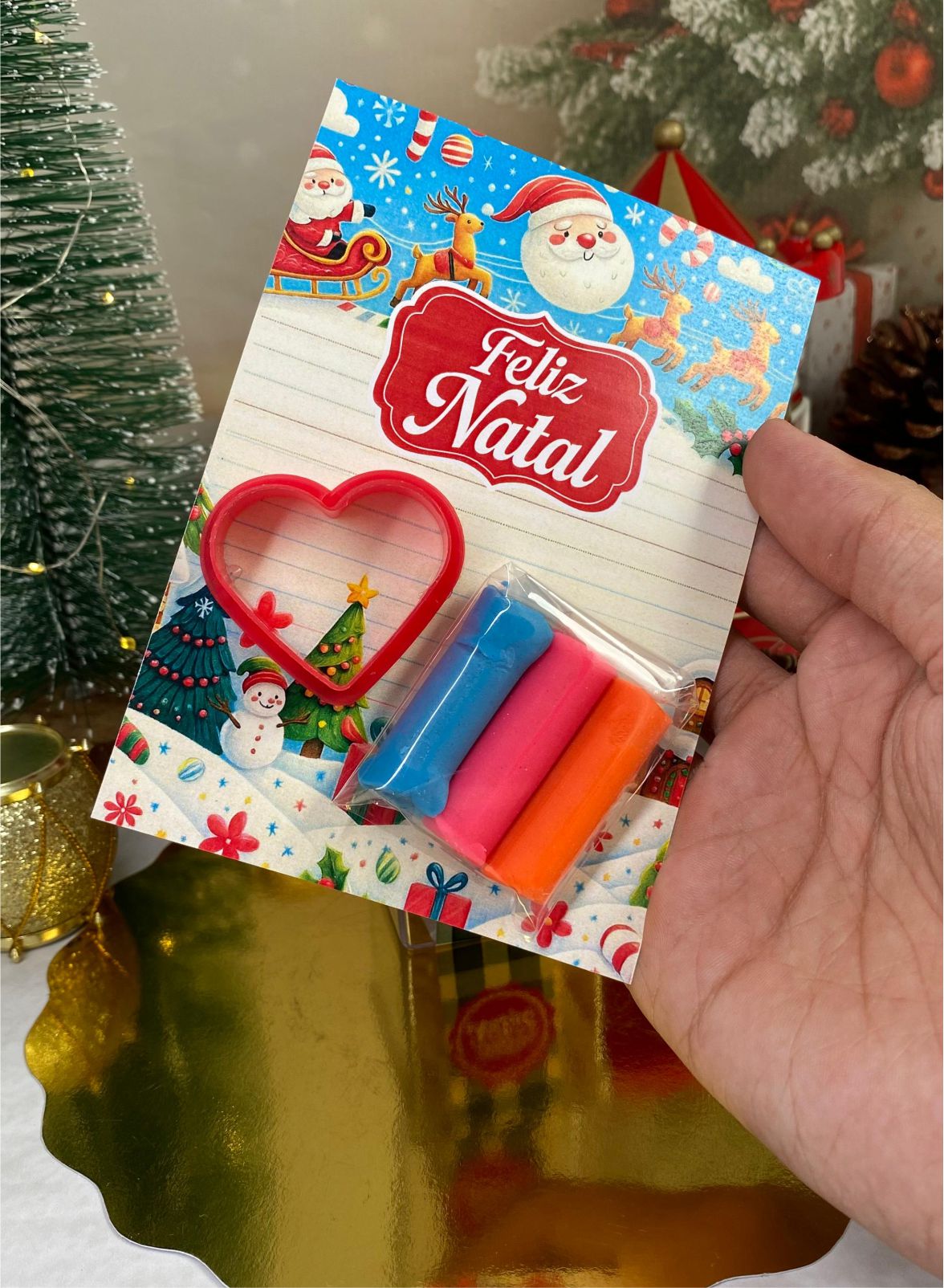 Encante as crianças neste Natal com um cartão criativo! Ideal para acompanhar massinha, moldes e outros pequenos brindes. Produto 100% digital e prático para imprimir. 🎄✨