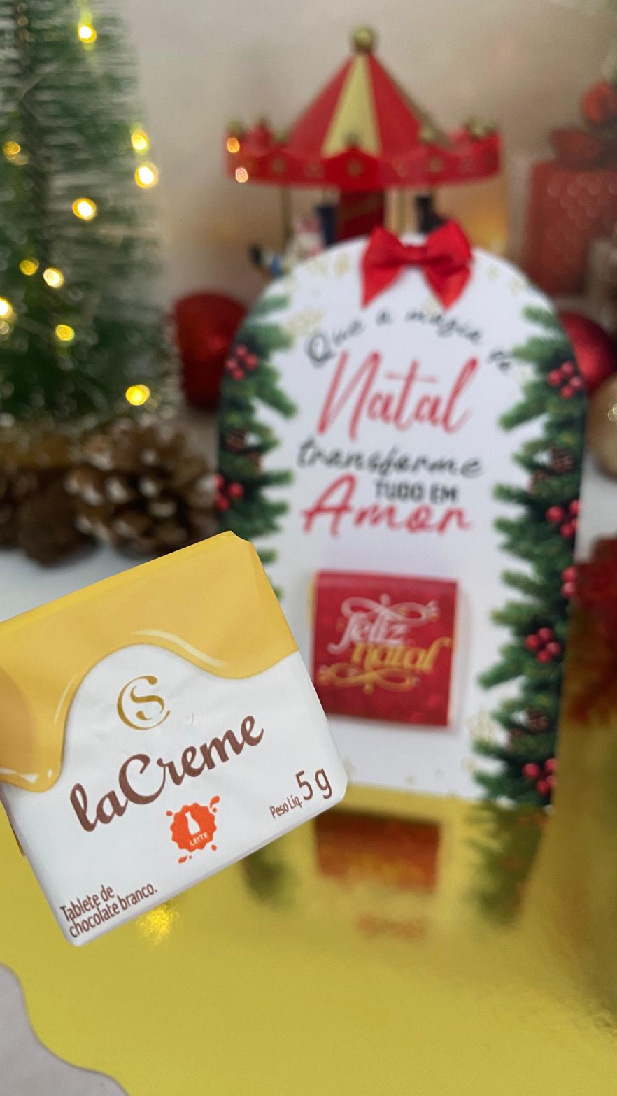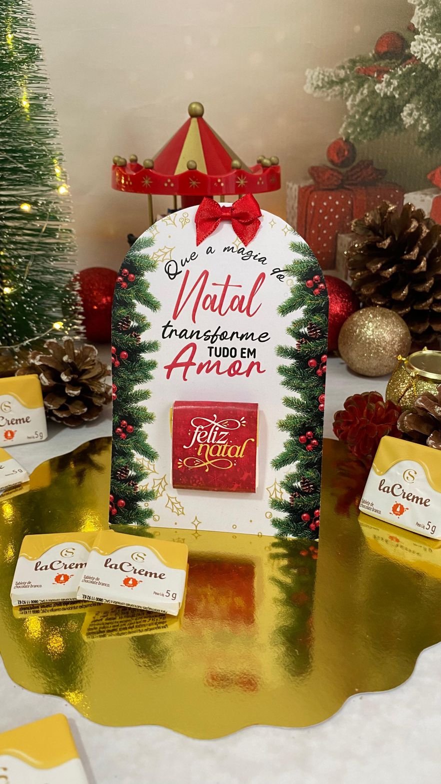 Encante alguém especial neste Natal com este lindo cartão da Coleção de Natal, projetado para acomodar perfeitamente um chocolate pequeno da Cacau Show ou similar. O design é elegante, festivo e carinhoso, transformando um simples chocolate em uma lembrança única e especial.
